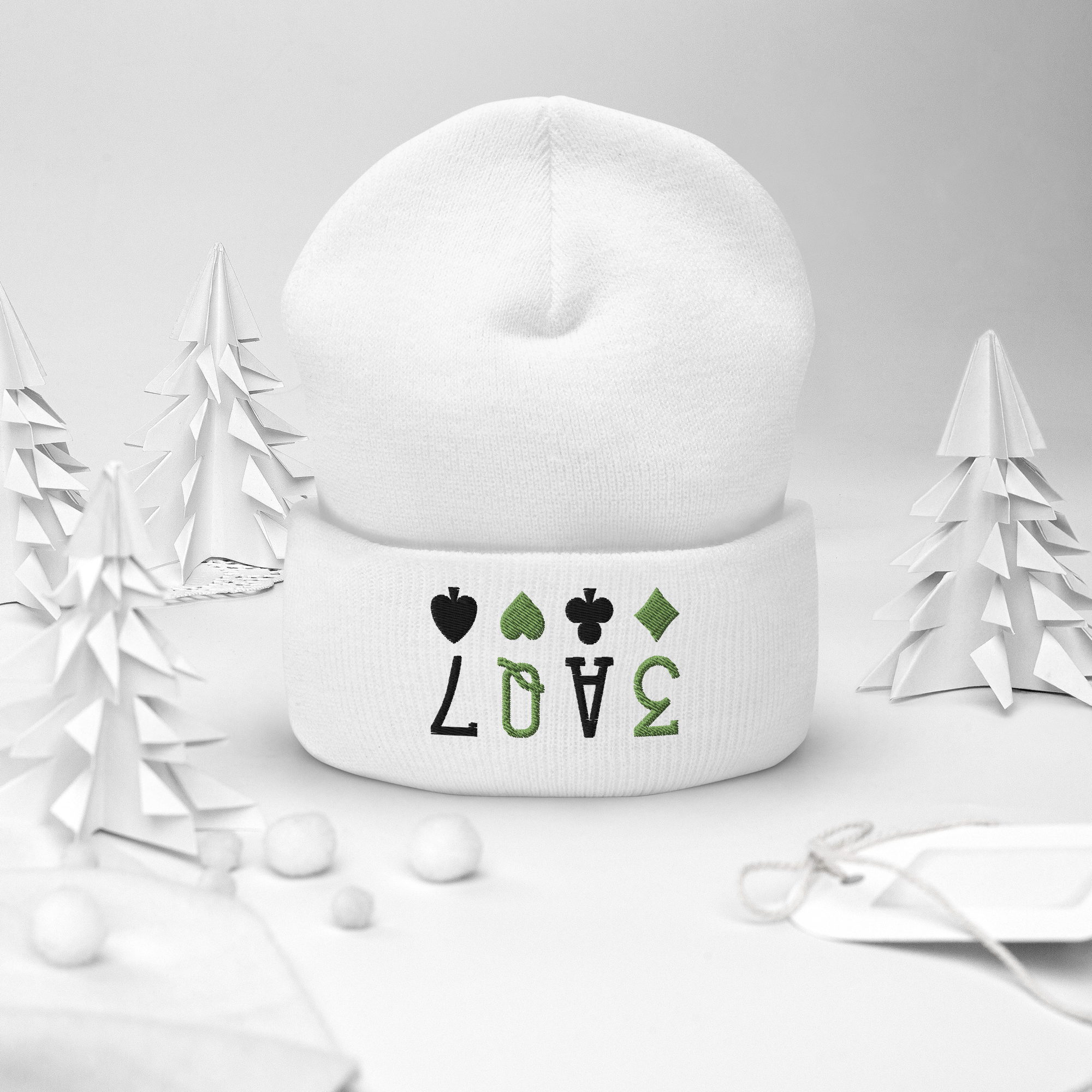 Nein, der Beanie aus unserer L.O.V.E Collection hat echte Klasse – mit fein aufgestickten Kartensymbolen, die mehr sagen als tausend Worte: Die PIK7 für das Abenteuer, die Herzdame für die Liebe, das Kreuzass für deine Stärke und… naja, das Karo 3 ist unser kleines Geheimnis. (Okay, es steht für Spaß, aber wer sagt schon ‘nein’ zu einem Hauch Geheimniskrämerei?)